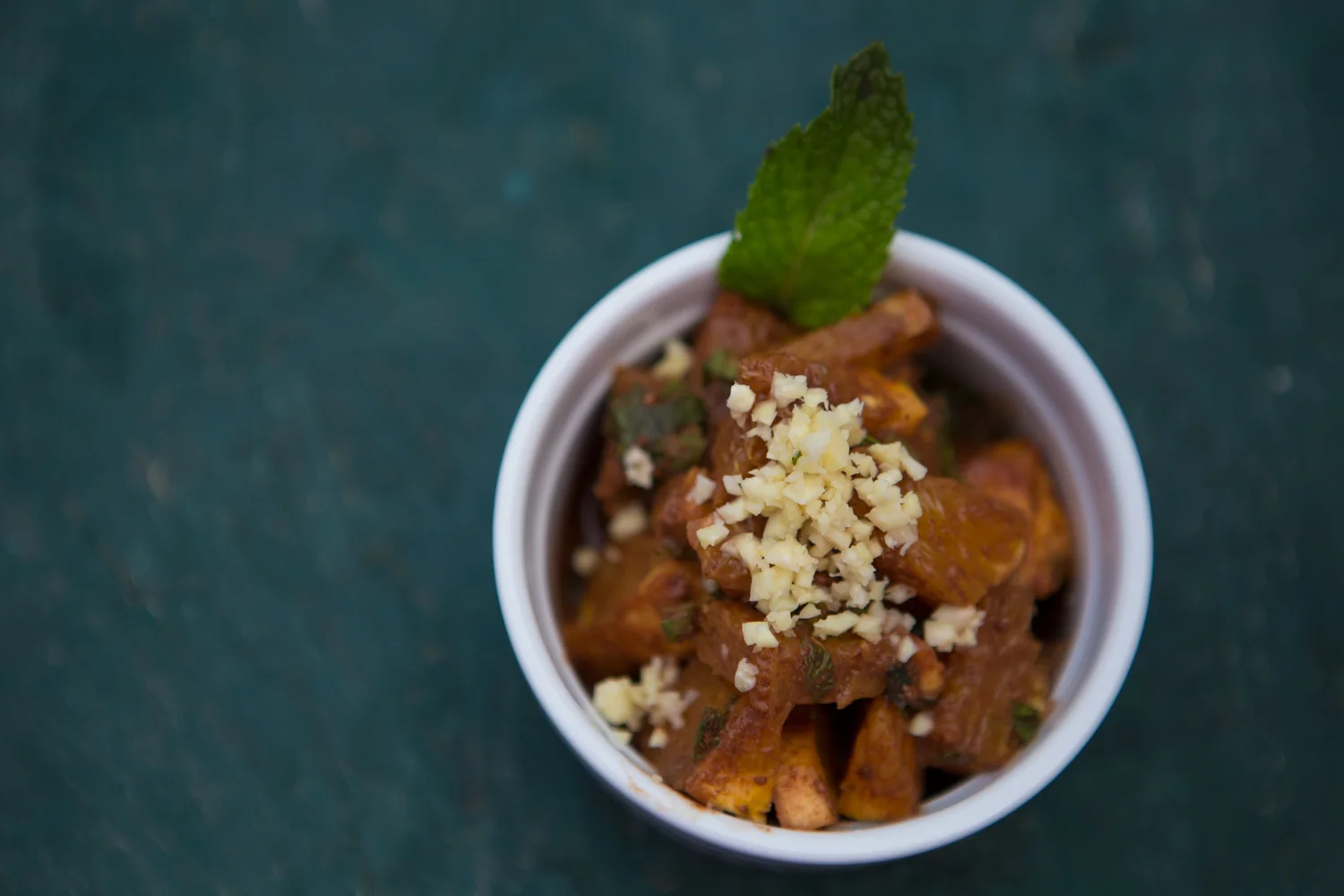 At our Ibiza yoga retreat, we were blessed with an amazing chef named Chita. She was one of those people who immediately felt like family. She spoiled us with her amazing dishes and good energy, and I'll never forget her. One of the desserts we had was a delicious mint chocolate orange dish that I tried to recreate today. The unexpected mint flavor complements the orange and chocolate nicely, and it totally satisfies any sweet cravings.