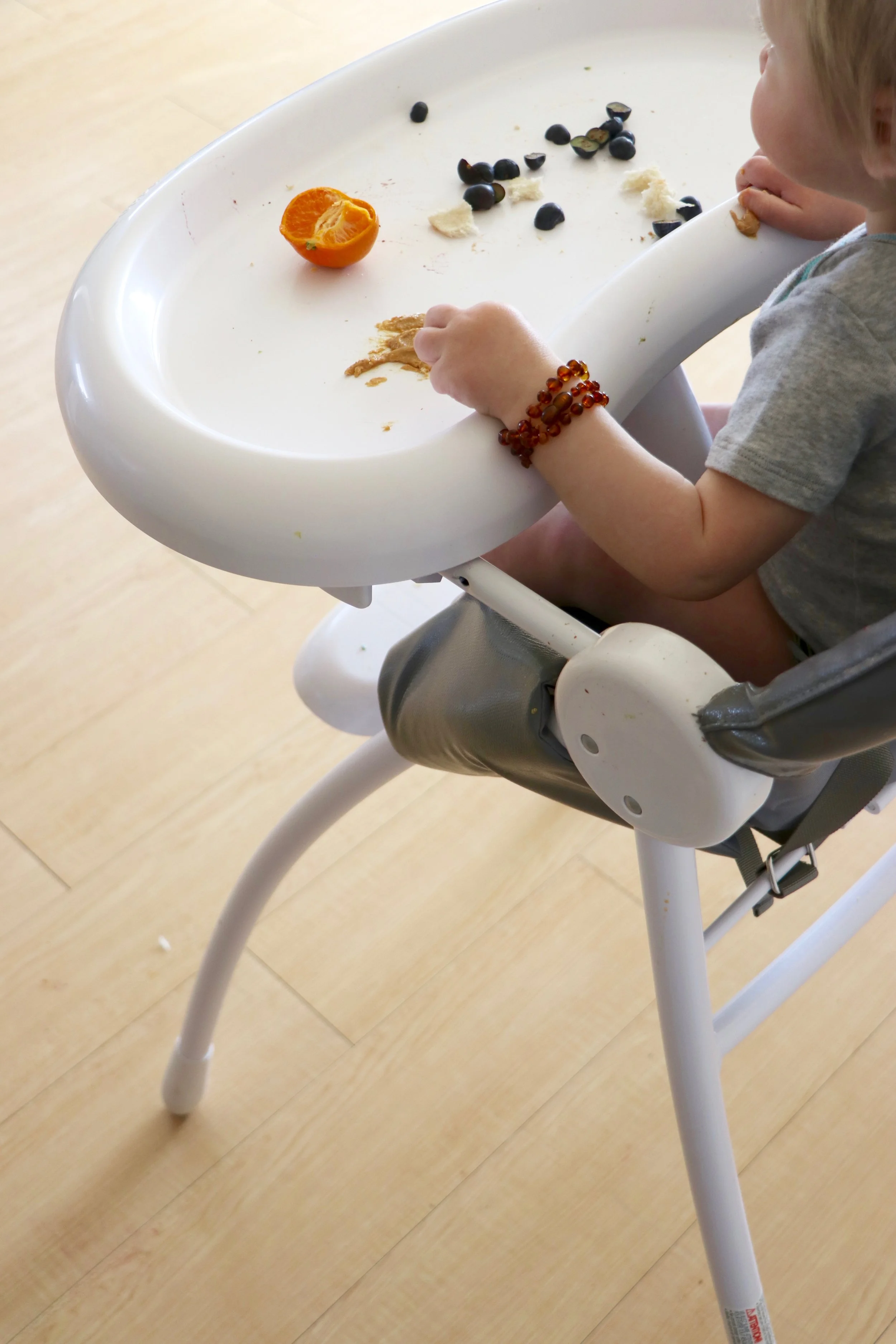 Along with our graduation to “big boy foods” we’ve also made the decision to finally get the kid a legitimate highchair. When he was younger he wanted nothing to do with sitting in any type of chair, the only way he would eat (not on our laps) is if he was sitting in his bumbo. A few months down the road he’d tolerate the type of chair that clips onto the table or island surface - we used one from Phil&Ted’s Lobster Highchair and it did the trick for awhile. But it was definitely time for an upgrade. We decided to go with the Nano Flat Fold Highchair from Bloom. We’re still living that apartment life so the fact that it folds up easily and takes up minimal space when we’re not using it is key for us a family.