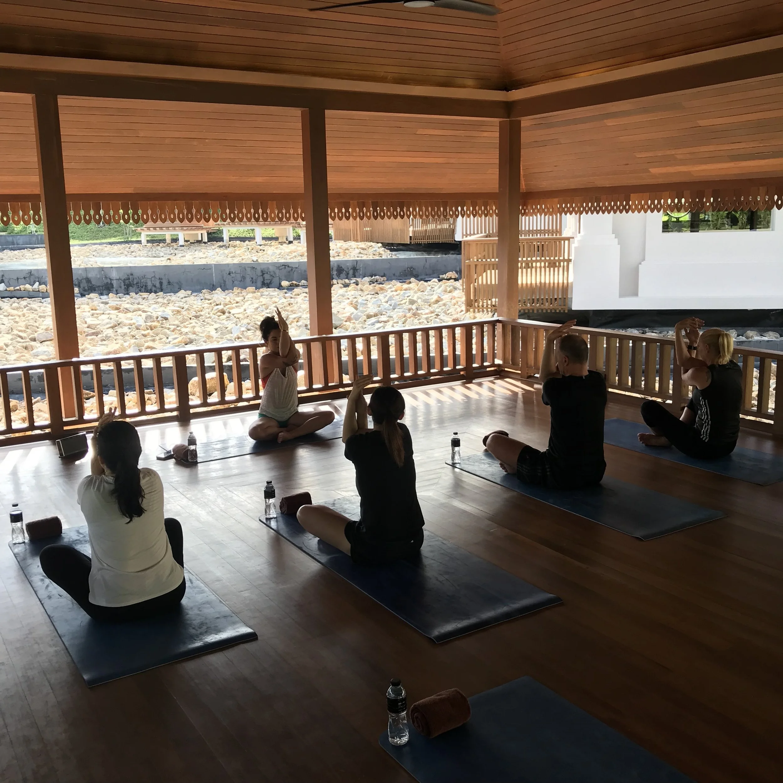Yoga with Ritz-Carlton Koh Samui guests in their Spa Village